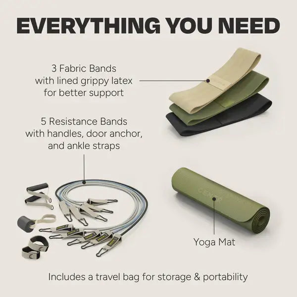 This comprehensive fitness set provides everything you need for customizable resistance workouts that help you strengthen, tone, and elongate muscles, improving both your physical performance and overall wellbeing. The included travel bag makes it easy to take your training routine wherever life takes you.
